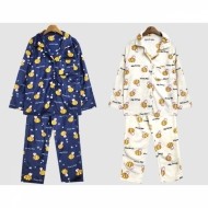 남성 레드 베어 오픈카라형 수면 잠옷 세트 파자마