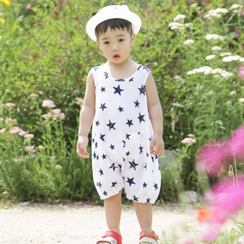 국산 쉬폰인견 남녀공용 유아복 쉬폰호피점프슈트 4세까지